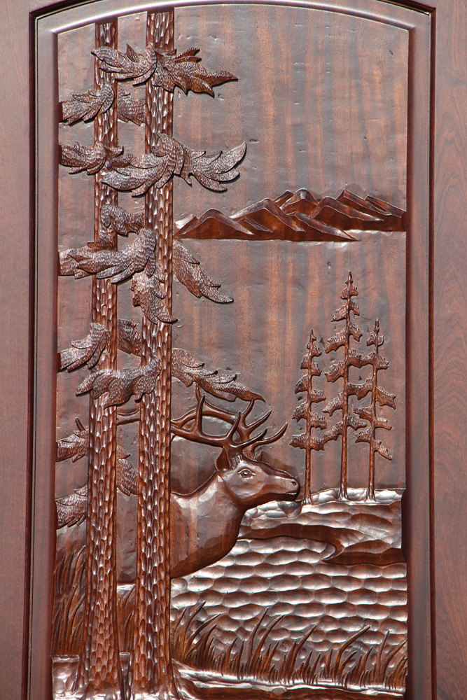 Carved Mahogany Door with Elk Theme